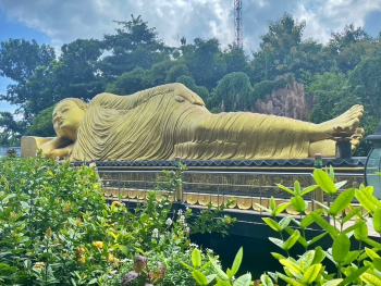 The Reclining Buddha statue holds deep philosophical significance in Buddhist teachings. The statue's pose, tilted to the right with its right palm supporting its head (known as Maha Parinibbana), depicts the moment of Gautama Buddha's death, or the moment of attaining Parinibbana (perfect nirvana). Beneath the foundation of this giant statue, relief carvings depict the Buddha's life journey, the law of cause and effect (karmaphala), and the law of rebirth.